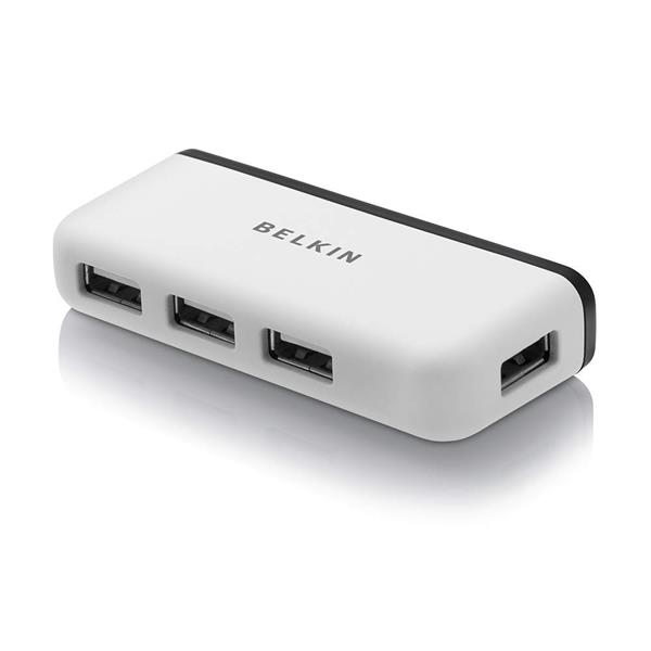 USB 2.0-hub Belkin Travel Hub, 4xUSB 2.0 - Vit/svart