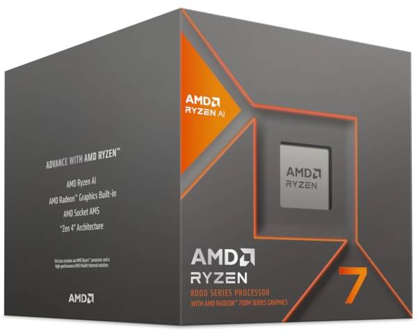 AMD Ryzen 7 8700G 8-Core 16-Thread (65W), 4,2/5,1 GHz, 24 MB cache, Socket AM5, boxad med Wraith Spire-kylare