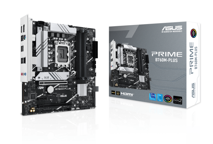 Asus Prime B760M-PLUS, Intel LGA1700, PCI Express, MicroATX, 4xDDR4, 2xM.2 + SATA3 RAID, HDMI/DP, USB 3.2, 2.5Gbe LAN, Aura Sync RGB