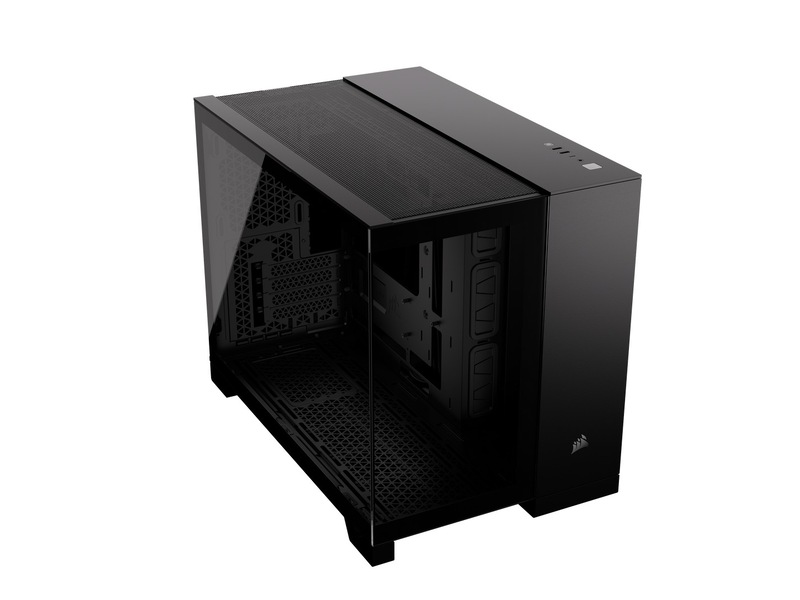 CORSAIR 2500X Micro ATX Dual Chamber PC-chassi ger en ren och organiserad bild av din SFF PC genom dubbla frontpaneler av härdat glas. Njut av ett rörigt utseende med en dedikerad kammare för kablar, hårddiskar och kontroller. 2500X:s lilla storlek döljer många alternativ för din kylningsinstallation, med plats för upp till 9x 120 mm eller 4x 140 mm fläktar och mångsidiga monteringspositioner för radiatorer i taket, botten och sidan. Kompatibilitet med moderkort med omvänd anslutning ger dig en kabelfri bild av ditt system. Enkla enhetsfästen utan verktyg rymmer upp till 2x 3,5 tum eller 2x 2,5 tum lagringsenheter, medan en modern frontpanel I/O inklusive USB 3.2 Gen-2 Type-C ger bekväm åtkomst till enheten. Byggd för enkelhet och erbjuder en rad anpassningsalternativ, säkerställer 2500X att din SFF-dator ser ut och presterar som bäst.