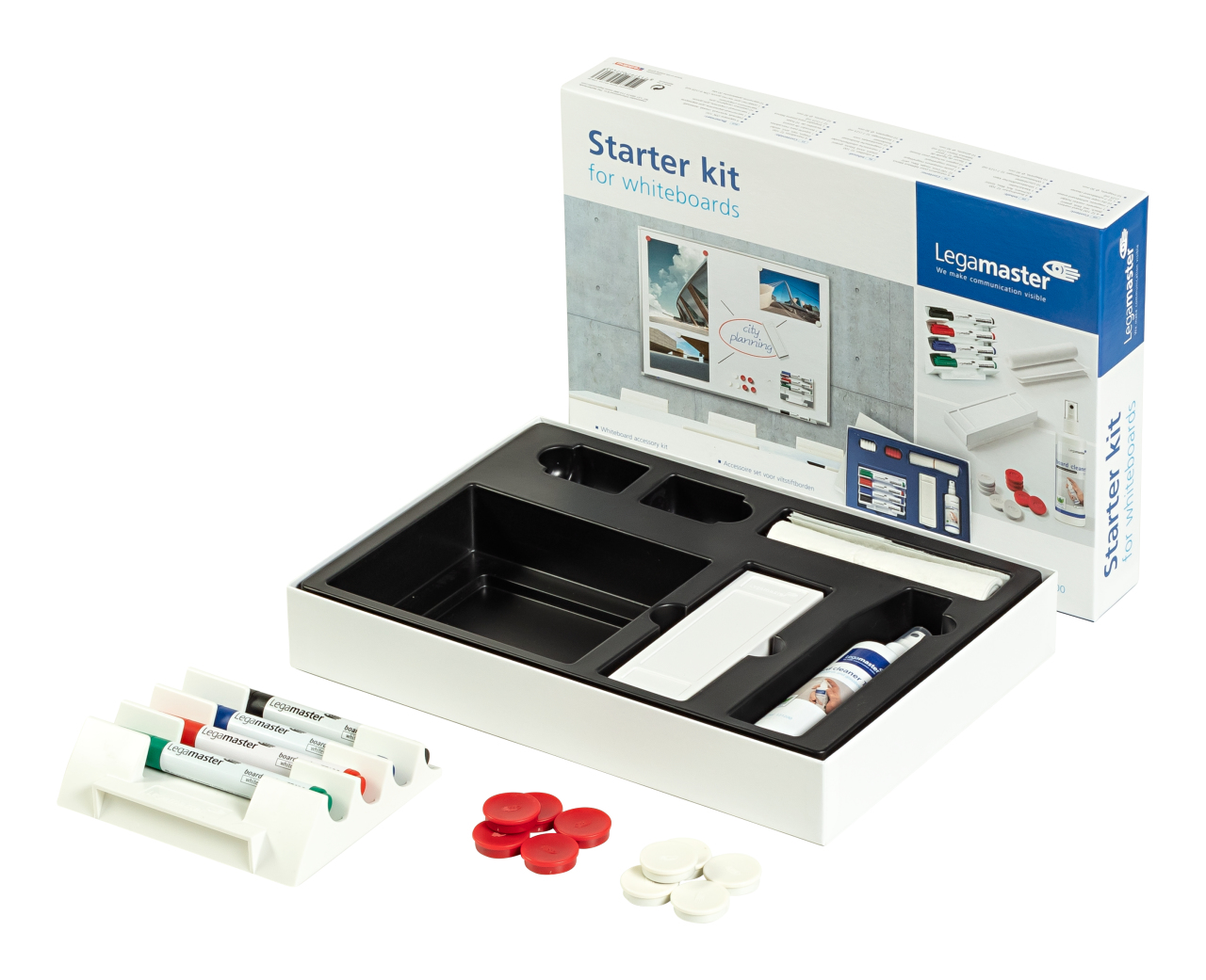 Oavsett om du ska hålla presentationer, planera projekt eller brainstorma med teamet – Legamaster Startset för WB-tavla – komplett är den perfekta starten.