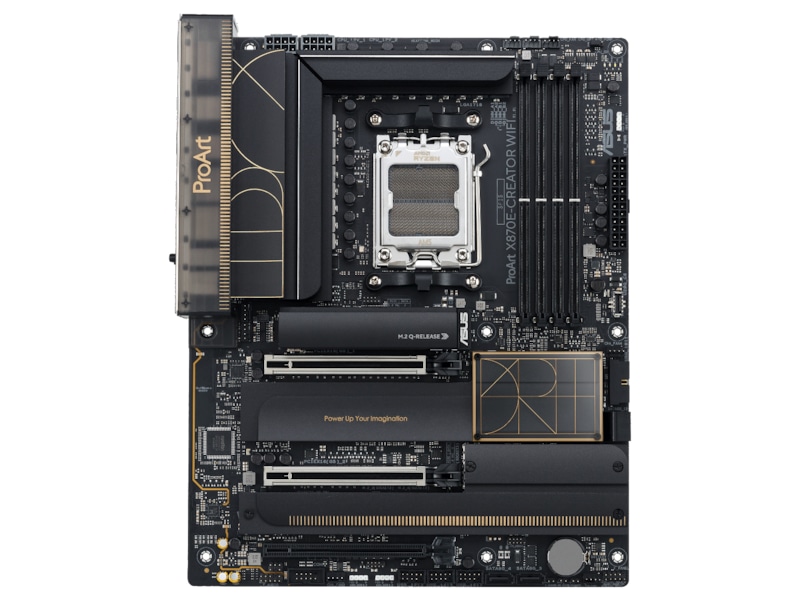 The ProArt X870E-Creator WiFi empowers creators of all levels by maximizing the performance of the latest AMD Ryzen™ 9000, 8000 and 7000 Series processors with 16+2+2 team power stages, DDR5 slots, PCIe® 5.0 and lightning-fast connectivity including dual USB4®, 10G and 2.5G Ethernet, and WiFi 7.?