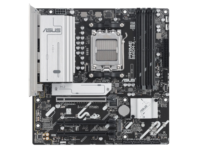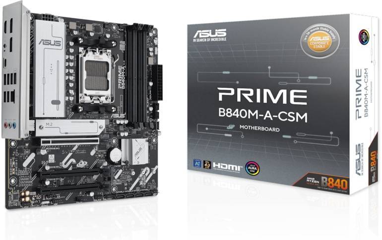 Asus PRIME B840M-A-CSM, AMD AM5, MicroATX, 4xDDR5, PCI Express, 3xM.2 + SATA3 RAID, HDMI/2xDP, USB-C, 2.5Gbe LAN, Aura Sync RGB