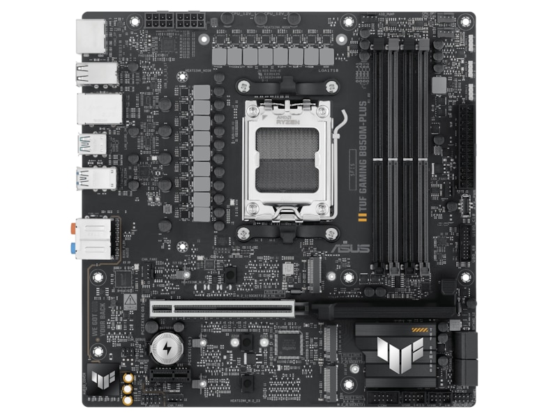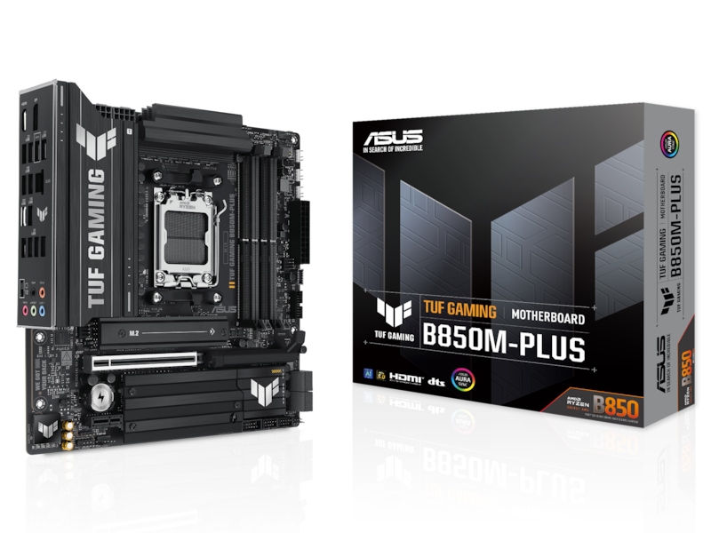 ASUS TUF GAMING B850M-PLUS takes all the essential elements of the latest AMD Ryzen™ processors and combines them with game-ready features and proven durability. Engineered with military-grade components, an upgraded power solution and a comprehensive cooling system, this motherboard goes beyond expectations with rock-solid and stable performance for marathon gaming. TUF GAMING motherboards also undergo rigorous endurance testing to ensure that they can handle conditions where others may fail. This platform delivers the power and connectivity that advanced AI PC applications demand.