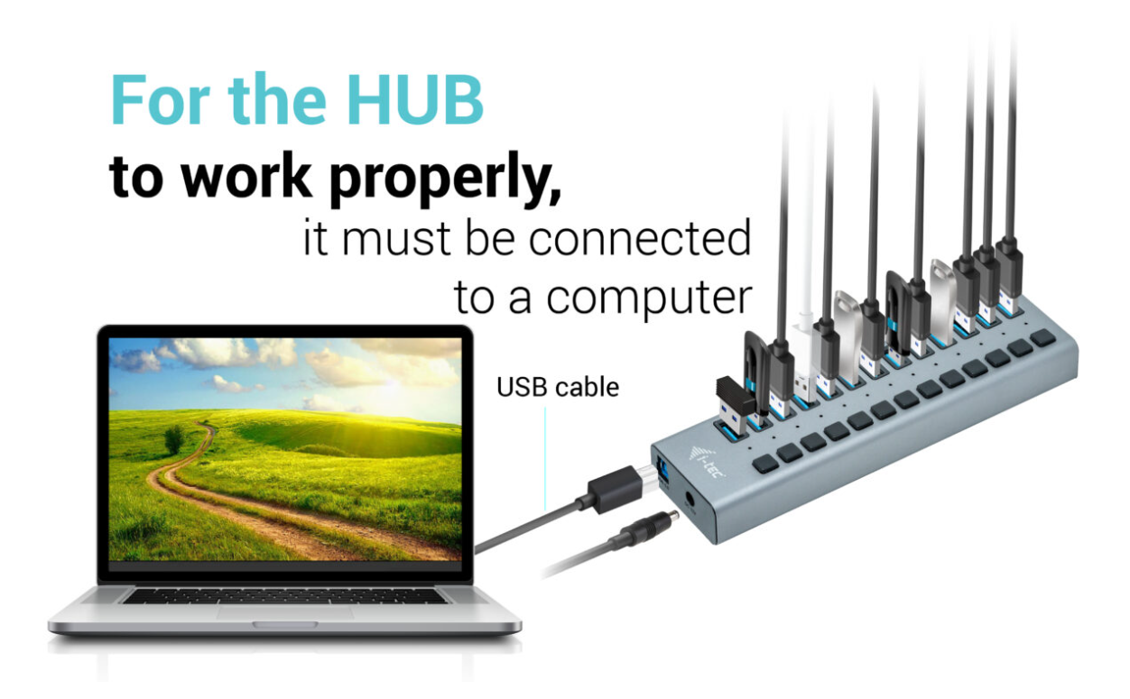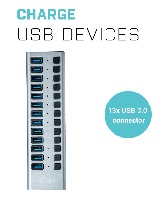 USB 3.0-hub i-tec Charging HUB, 13xUSB 3.2, inkl. 60W strömadapter