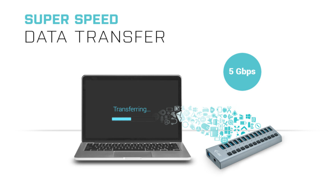 USB 3.0-hub i-tec Charging HUB, 16xUSB 3.2, inkl. 90W strömadapter