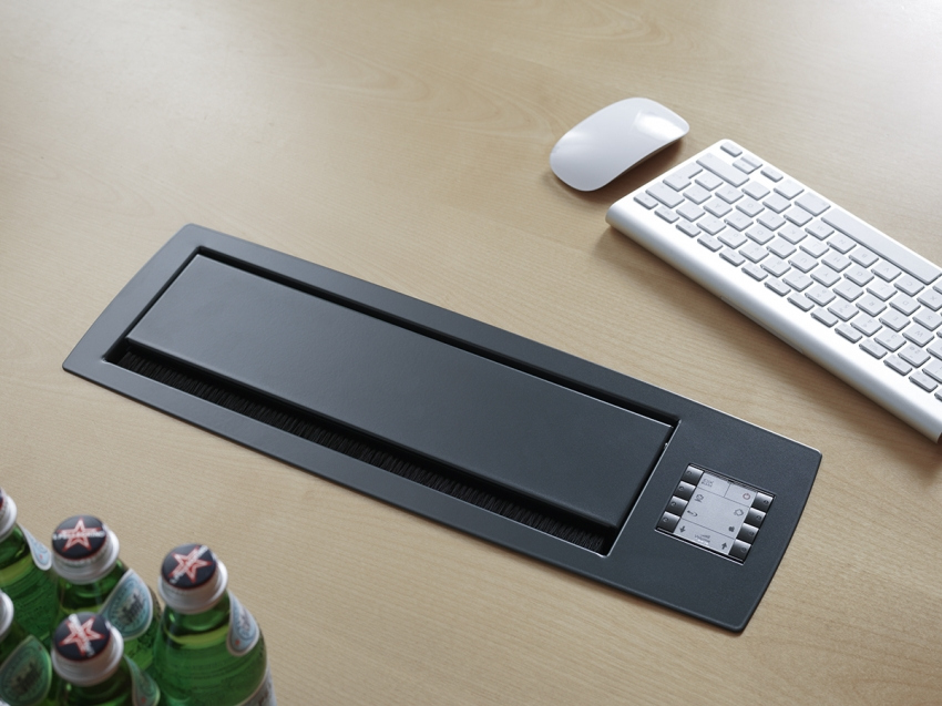 Table Connect är anpassad för Bachmann CONI-uttagslist (lång, 6 modulplatser). Bachmann CONI-uttagslist (kort, 3 modulplatser) passar också och kan kombineras med signalhantering från Atlona.