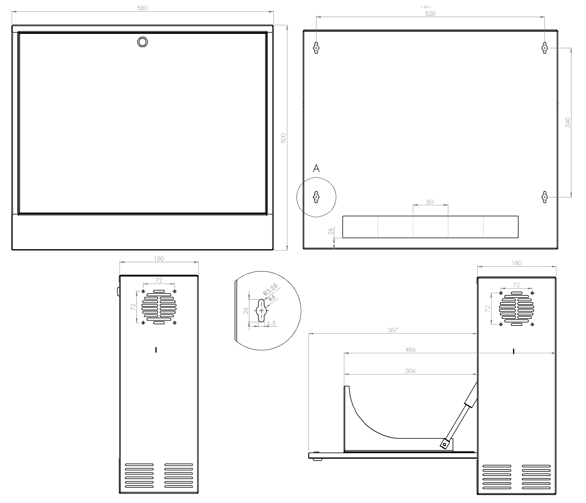 Installationer där du önskar minimalt monterings djup. Vertikalt teknikskåp för 19” utrustning, 2 eller 3HE och ett monterings djup av utrustning på 350mm ger dig stora möjligheter när det är platsbrist, tar endast 150 eller 180mm djup i anspråk.