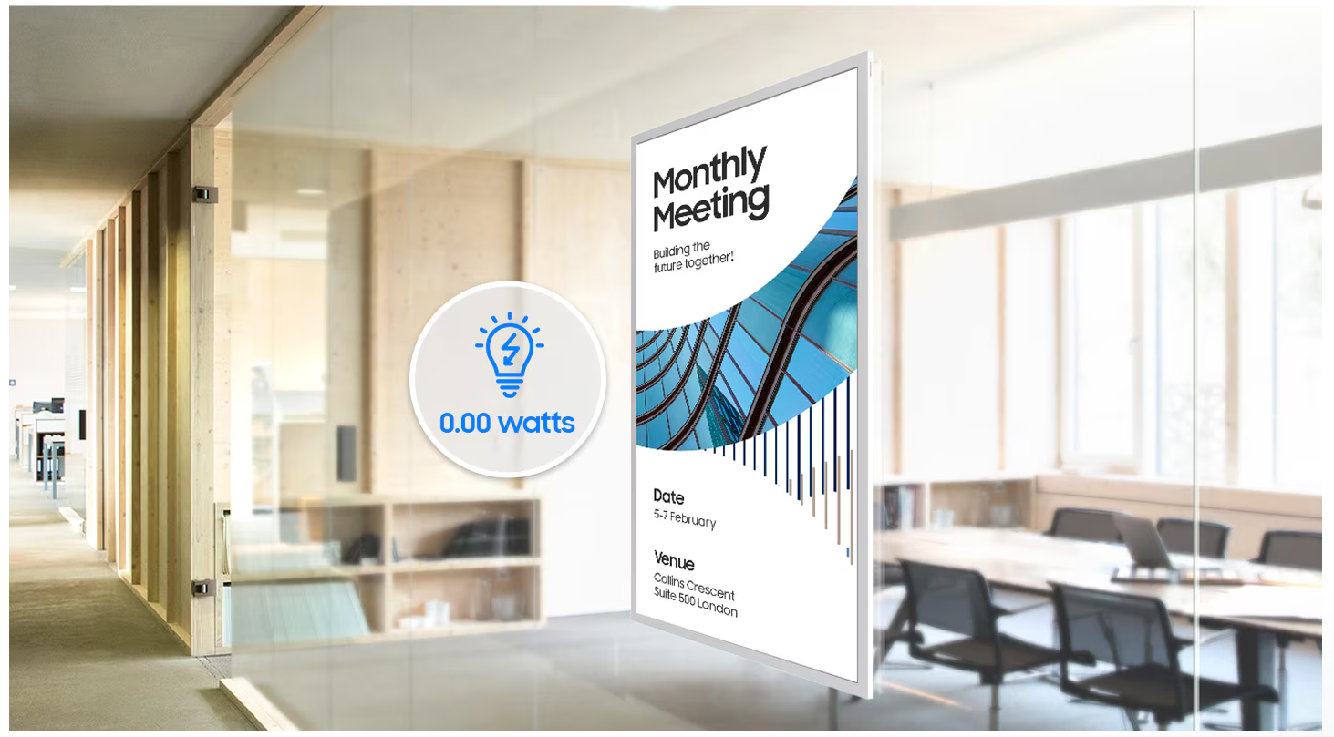 EMDX revolutionerar sättet du visar innehåll på, med stabil drift och minimal strömförbrukning. Att behålla bilden på skärmen kräver endast 0,00 watt – och en fulladdning på 3 timmar räcker i över 500 dagar.**