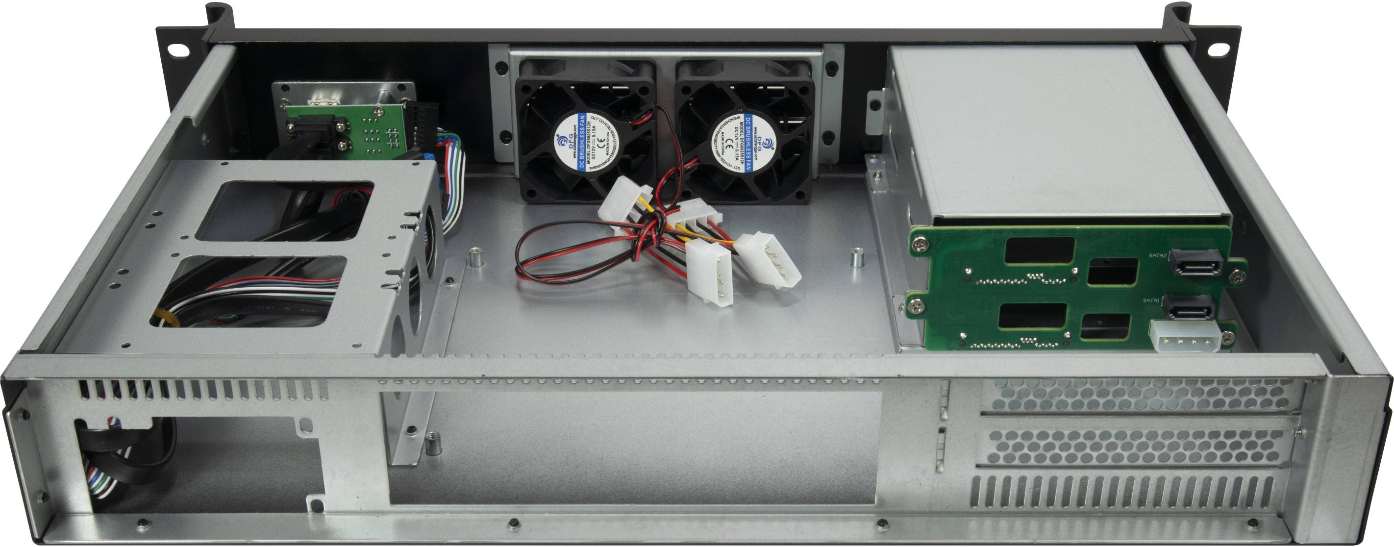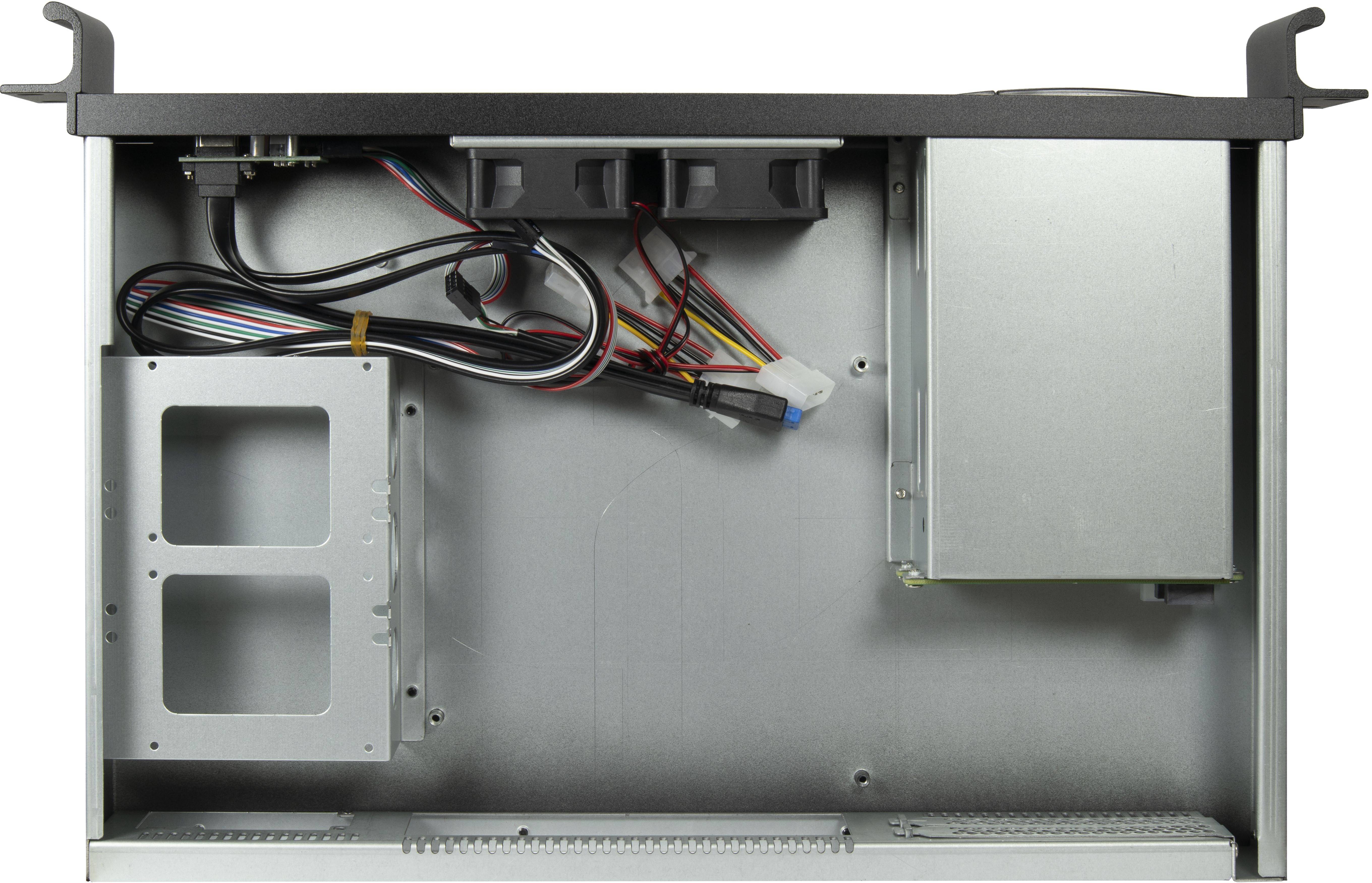 The special design in 1.5U enables you to run two external drives (2.5" or 3.5") in Hot-Swap mode on an ITX-Mainboard base. The interior offers the option to mount two additional 2.5" drives and more height for CPU-cooler than a regular 1U case.