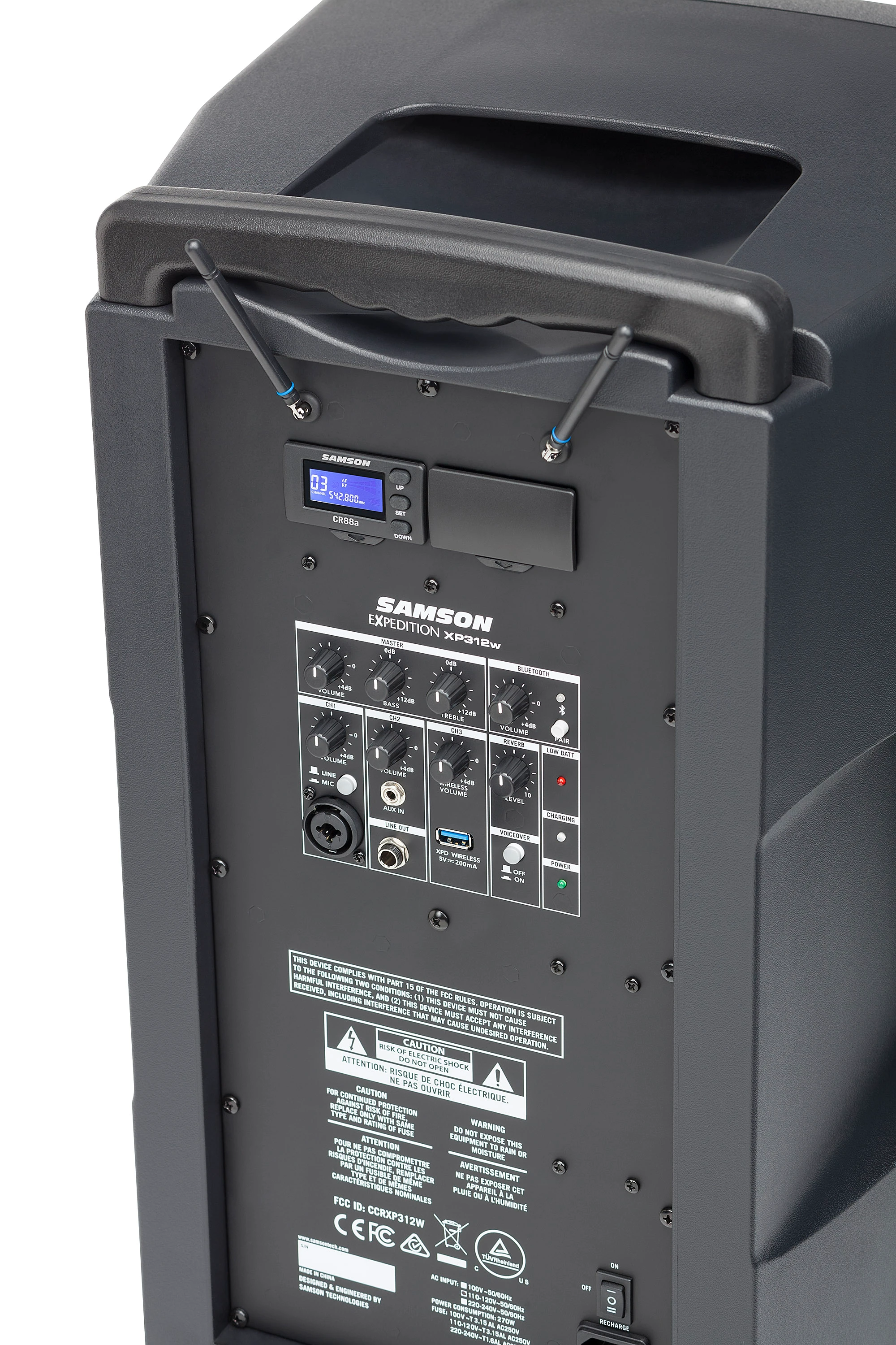 Samson XP312w, batterihögtalare, 12" + 1" tvåväg, batteri upp till 12 h, 4-kanals mixer (EQ, reverb, ducking), bluetooth, trådlös handmick ingår, hjul, teleskophandtag