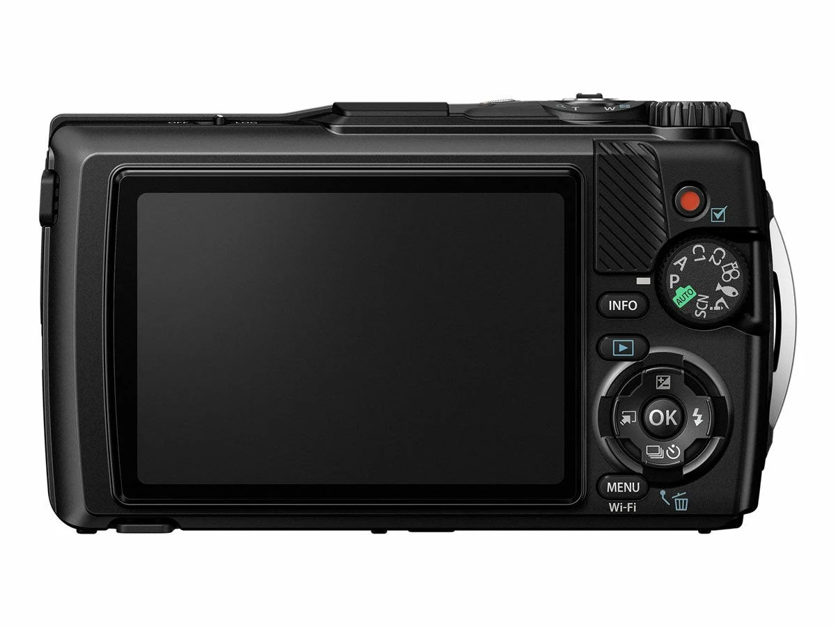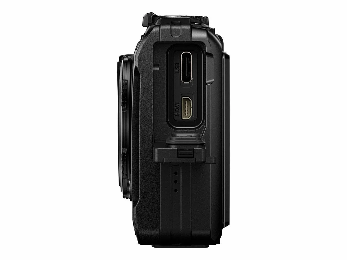 Olympus OM System TG-7 Black, 12 Mpixel, 4X zoom (25-100 mm), film 4K@30fps, vattentät till 15m, RAW, GPS, WiFi/Bluetooth - Svart