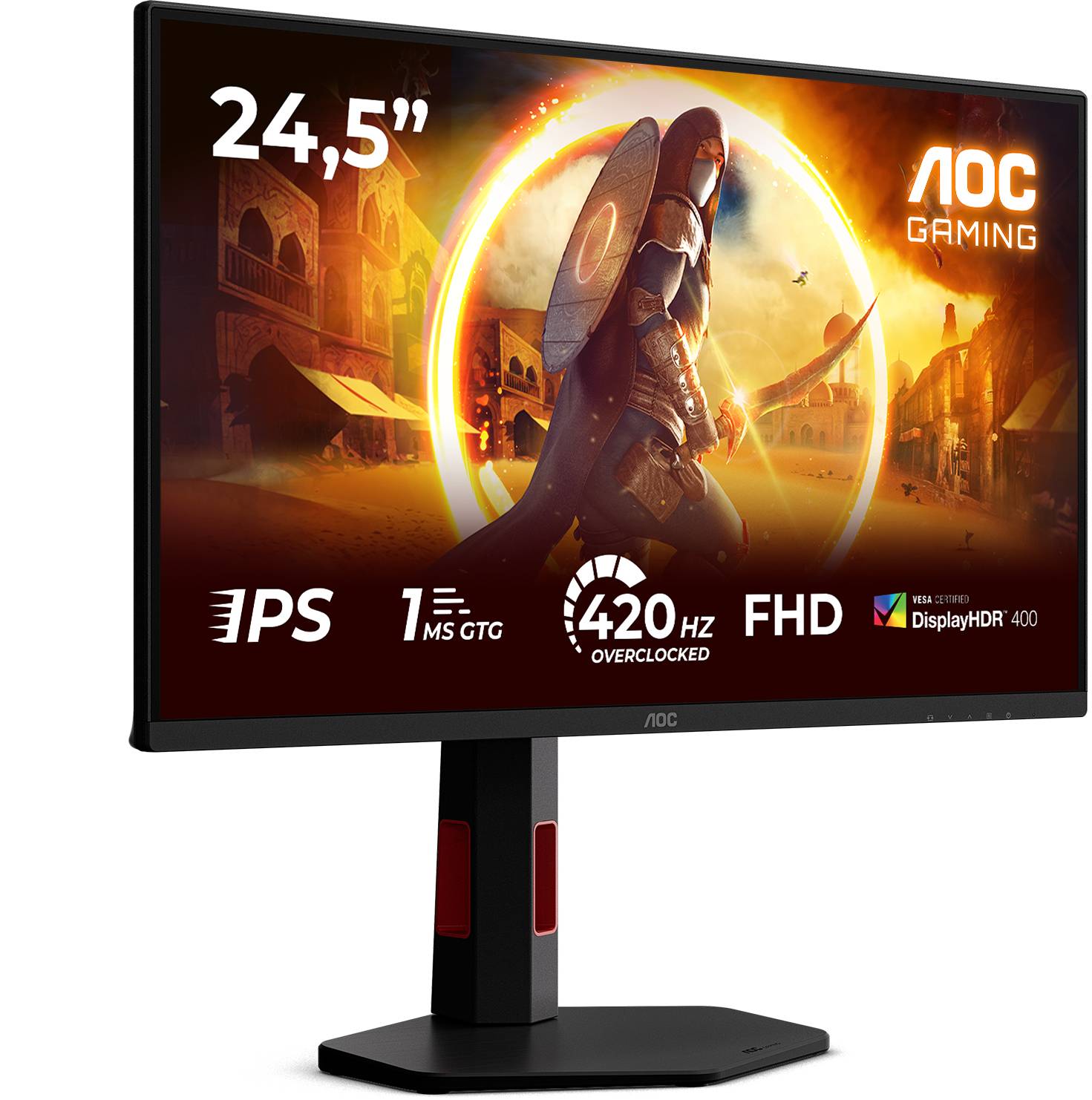 24.5" AOC 25G4KUR, Fast IPS 1920x1080, 0,5ms, 420Hz, HDR400, höjdjusterbar, pivot, 2xHDMI/DP, USB 3.2-hubb