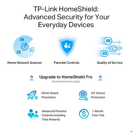 TP-Link HomeShield ger dig extra säkerhet med funktioner som föräldrakontroll, hotblockering och realtidsanalys av nätverkstrafik. Allt är lättöverskådligt direkt i appen.