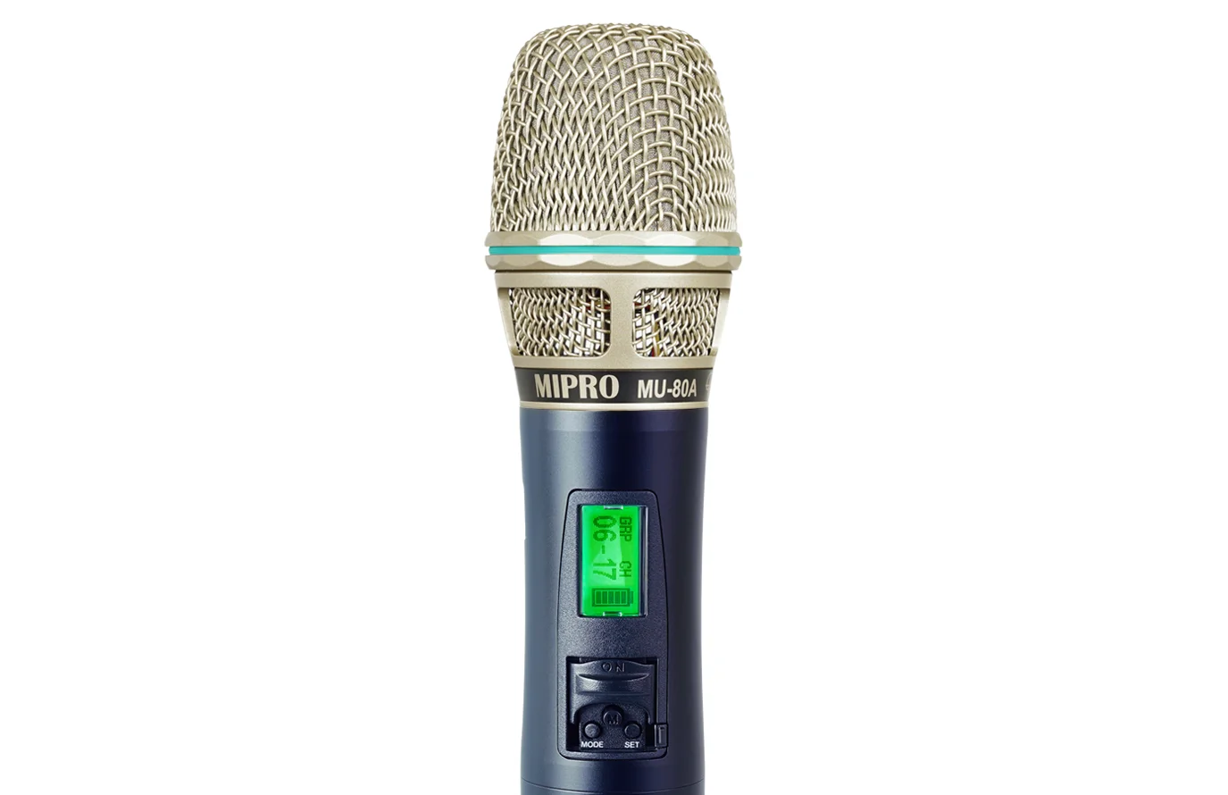 Mipro ACT-500H är en trådlös och uppladdningsbar handmikrofon, anpassad för Mipro ACT-5xx mottagare. Metallchassi med display som visar batteristatus, frekvensgrupp samt kanal.