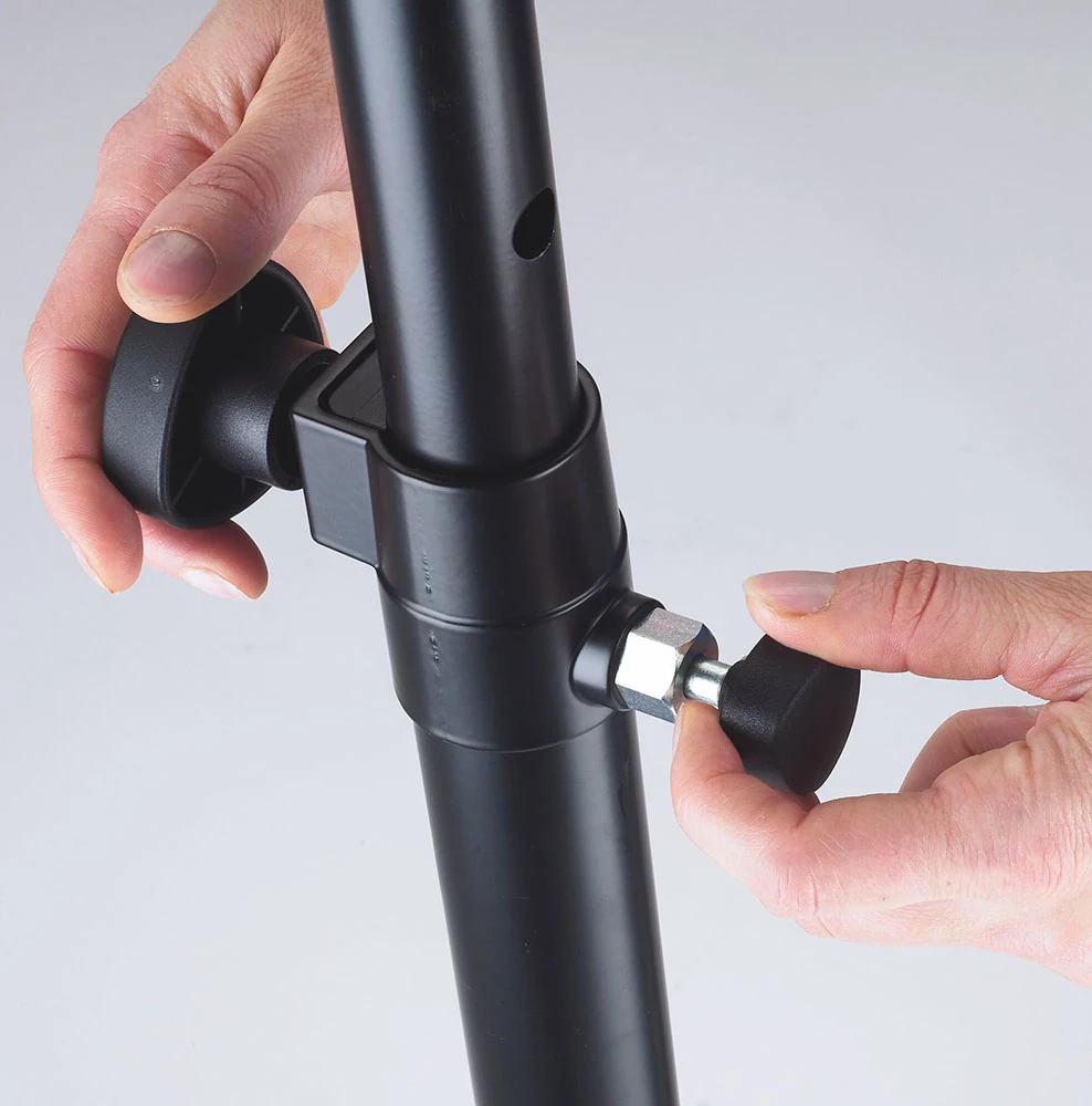 2-delat högtalarstativrör i stål med säkerhetssprint. Används mellan bas och topphögtalare. Passar högtalare med fäste för stativ med en rördiameter på 35mm.