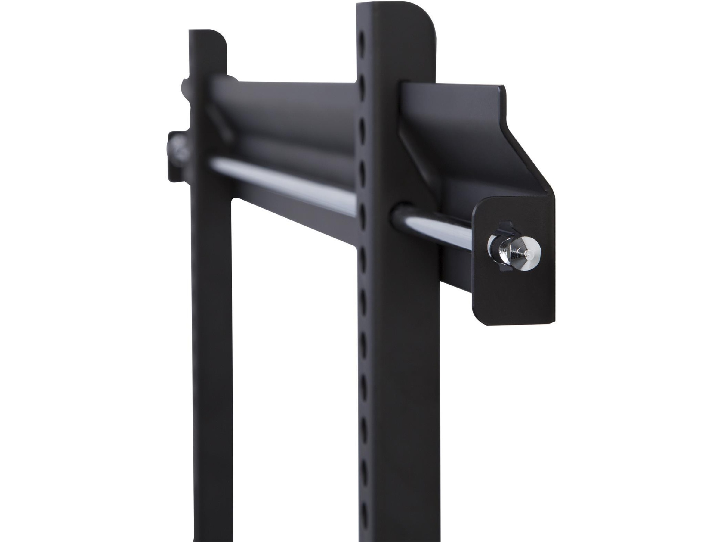 Trä låspinnen genom hålet på sidan av väggskenan, genom monitorfästena och ut på andra sidan av väggskenan. Vridbar låspinnen för att säkra pinnens position. Kan eventuellt låsas med ett hänglås för ökad barnsäkerhet.