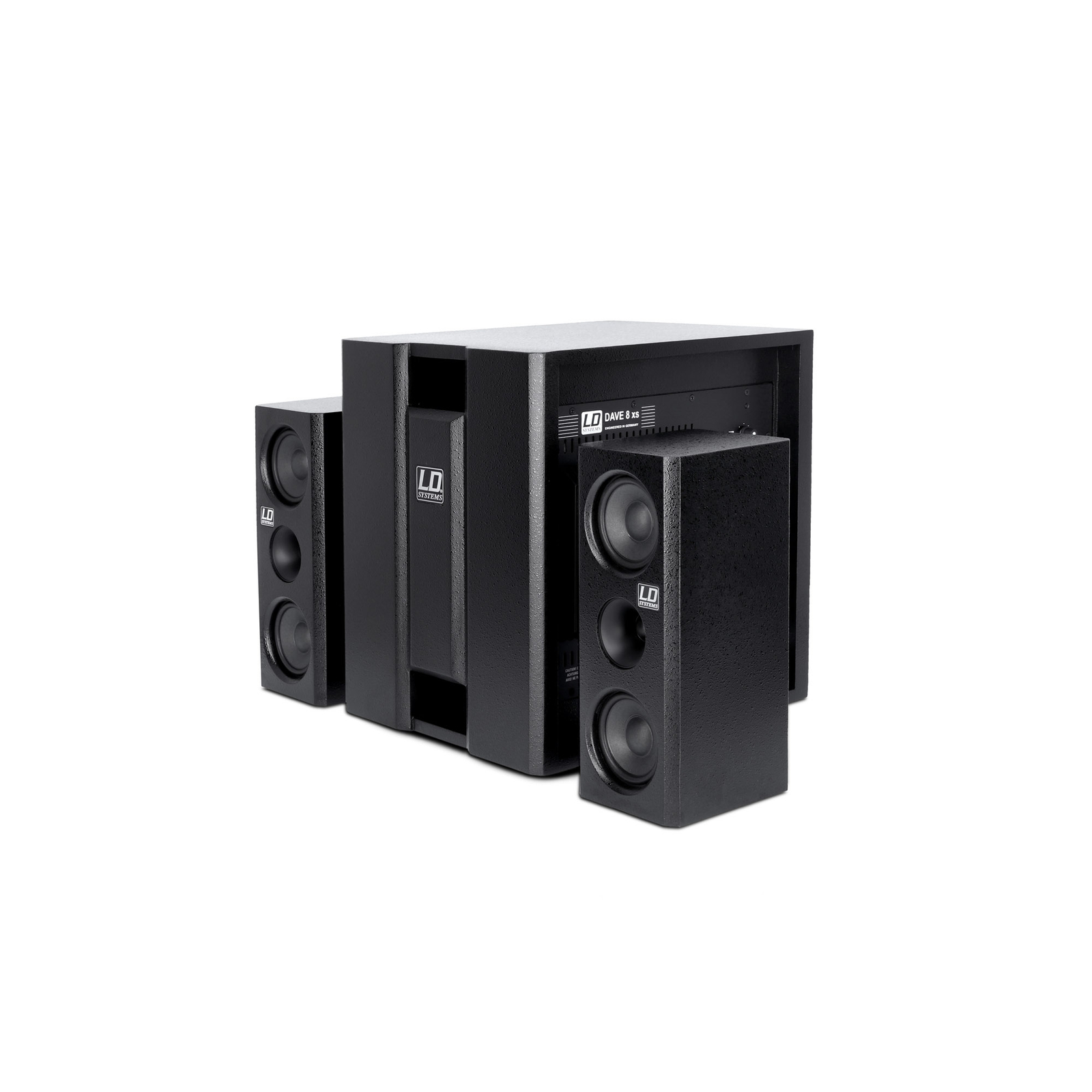 Systemet ger kristallklart ljud och är speciellt utformat för multimediaapplikationer som hemma-PA eller spel; det är också lämpligt som monitor för DJ:s eller keyboardister eller som musiksystem för mindre lokaler som barer och kaféer. Den högpresterande A/B-förstärkaren som är inbyggd i subwoofern hanterar både subwoofern och satelliterna. Multimediasystemet LD DAVE 8XS har linjeingångar i XLR- och RCA-format och är utrustat med alla standardskydd. Den inbyggda begränsaren skyddar systemet från överbelastning och säkerställer lång livslängd. På sidan av subwoofern finns det, förutom en ON/OFF-brytare och en fasomvändningsbrytare (180°), en separat subwoofervolymvred som låter dig hitta den perfekta blandningen av lysande diskant, kraftfulla mellanregister och kraftfull bas.