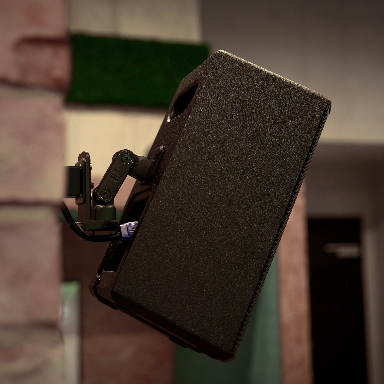 På grund av lagstadgade bestämmelser (BGV-C1 §7 "Skydd mot fallande föremål") måste högtalare, utöver att fästas på väggfästet, säkras mot fall med en anordning, t.ex. en stålvajer.