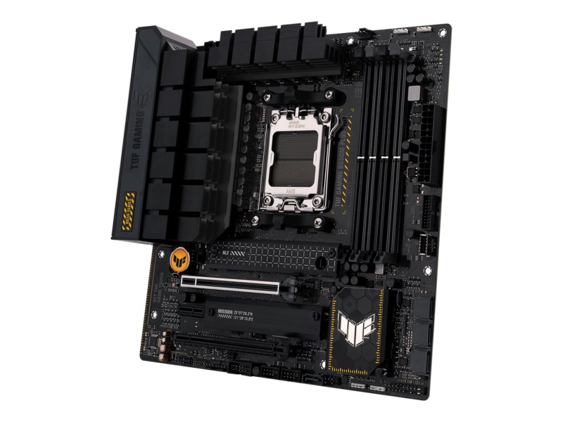 ASUS TUF GAMING B650M-PLUS WIFI takes all the essential elements of the latest AMD Ryzen 7000-series processors and combines them with game-ready features and proven durability. Engineered with military-grade components, an upgraded power solution and a comprehensive cooling system, this motherboard goes beyond expectations with rock-solid and stable performance for marathon gaming. TUF GAMING motherboards also undergo rigorous endurance testing to ensure that they can handle conditions where others may fail. Aesthetically, this model incorporates rugged off-black and geometric design elements to reflect the dependability and stability that defines the TUF GAMING series.