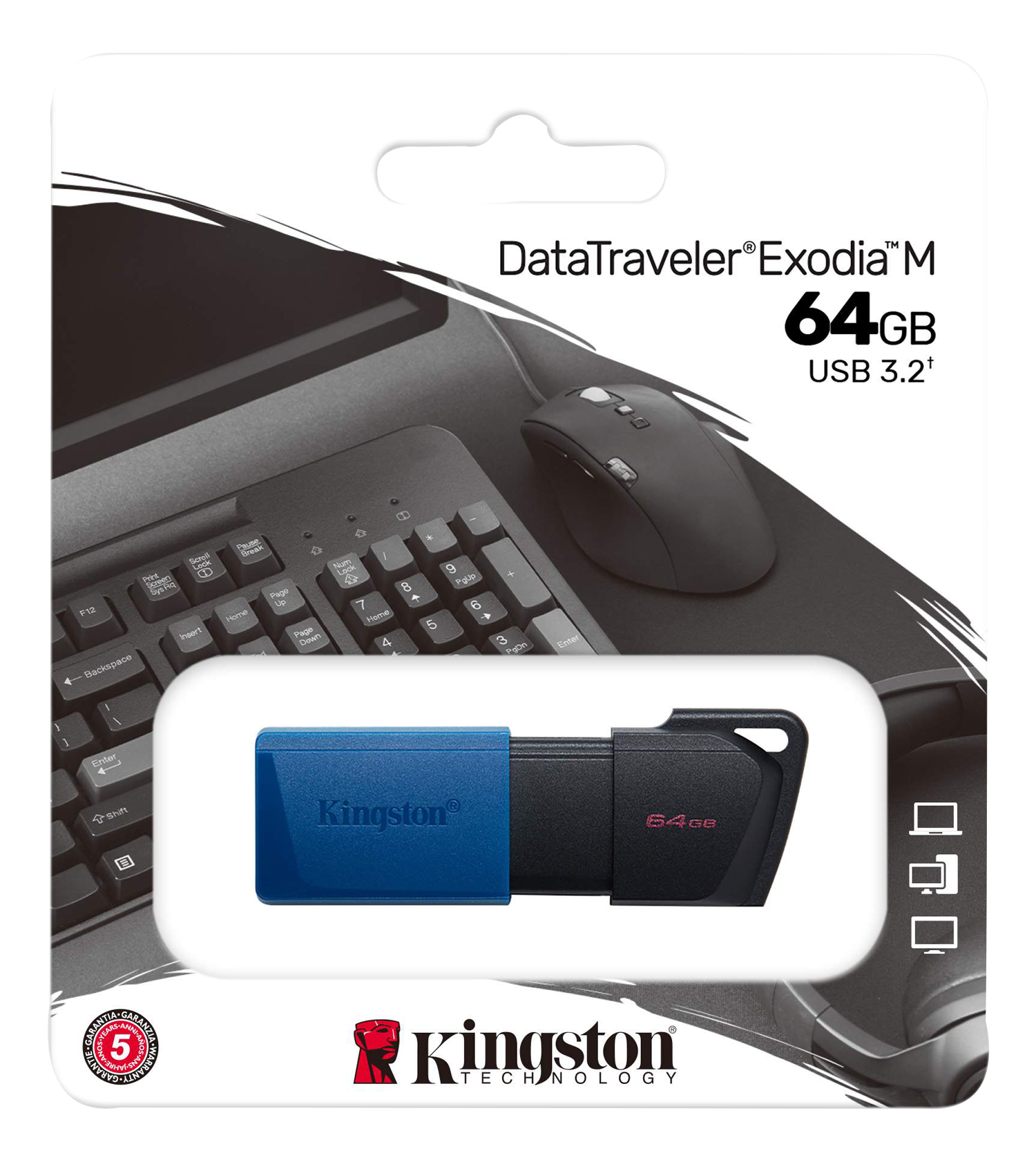 64 GB Kingston DataTraveler Exodia M, USB 3.2, Svart/Blå, 2-pack