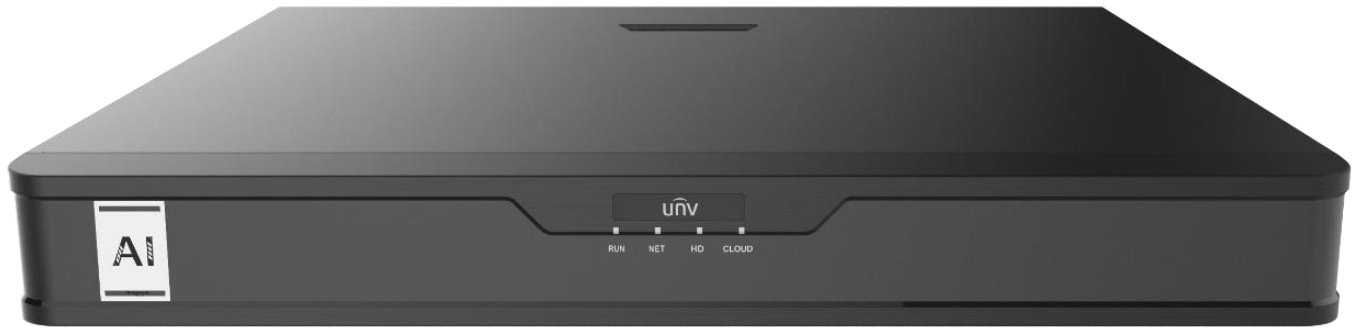 16-kanals AI NVR, 2x SATA interface, ansiktsigenkänning på åtta kanaler, 8x larmingångar, 2x larmutgångar, ljud in och ut, ANR, upp till 12MP inspelning