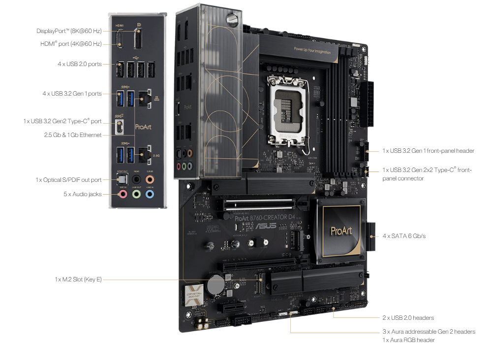 Asus ProArt B760-CREATOR D4, Intel LGA1700, 2xPCI Express, ATX, 4xDDR4, 3xM.2 + SATA3 RAID, HDMI/DP, USB-C, 2.5Gbe LAN+GigaLAN, Aura Sync RGB