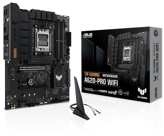 Asus TUF GAMING A620-PRO WIFI, AMD AM5, ATX, 4xDDR5, PCI Express, 2xM.2 + SATA3 RAID, HDMI/DP, USB-C, 2.5GbE LAN, WiFi 6, Bluetooth 5.3, Aura Sync RGB