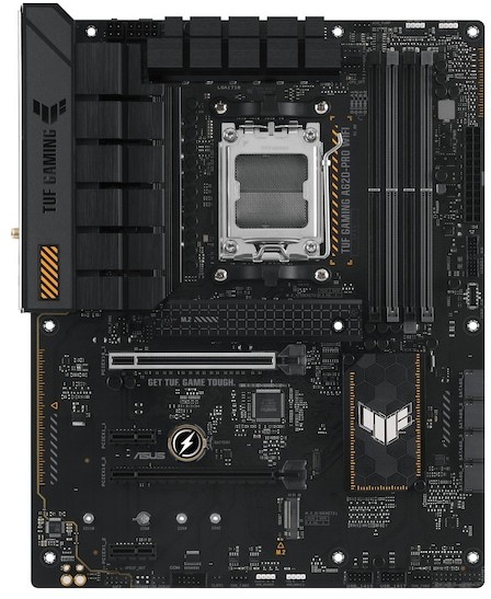 ASUS TUF GAMING A620-PRO WIFI takes all the essential elements of AMD Ryzen 7000-series processors and combines them with game-ready features and proven durability. Engineered with military-grade components, an upgraded power solution and a comprehensive cooling system, this motherboard goes beyond expectations with rock-solid and stable performance for marathon gaming. TUF GAMING motherboards also undergo rigorous endurance testing to ensure that they can handle conditions where others may fail. Aesthetically, this model incorporates rugged off-black and geometric design elements to reflect the dependability and stability that defines the TUF GAMING series.