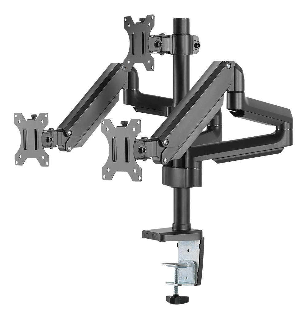 DELTACO OFFICE Premium monitorarm med gasfjäder, aluminium, tiltbar, svängbar, rotera, 17"-27", svart