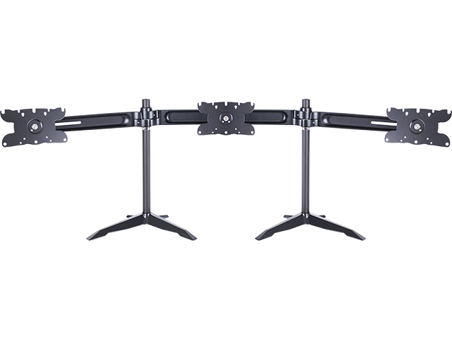 The M VESA Desktopmount Triple Stand 24"-32" is a heavy duty triple monitor desk stand made for the selected user who needs the hard to find triple desktopmount for larger screens up to 32". This product allows many types of configurations, and expansions. If you are in need to be surrounded by eyefinity the strong stand for multi-monitor this could be your choice.