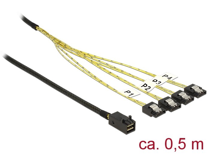 Mini SAS HD till 4xSATA, DeLOCK, 0,5m