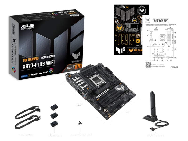 ASUS TUF GAMING X870-PLUS WIFI takes all the essential elements of the latest AMD Ryzen™ processors and combines them with game-ready features and proven durability. Engineered with military-grade components, an upgraded power solution and a comprehensive cooling system, this motherboard goes beyond expectations with rock-solid and stable performance for marathon gaming. TUF GAMING motherboards also undergo rigorous endurance testing to ensure that they can handle conditions where others may fail. This platform delivers the power and connectivity that advanced AI PC applications demand.