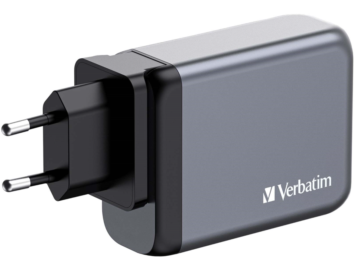 AC-adapter Verbatim GaN Charger 140W, 3xUSB-C / 1xUSB-A, inkl. reseadapter EU/UK/US