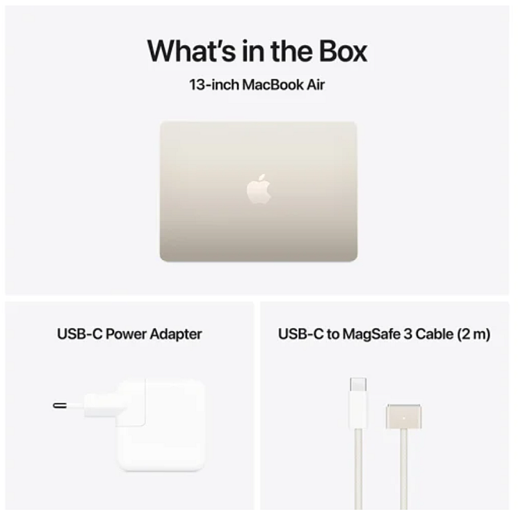 Apple MacBook Air 13.6 tum, Apple M4 10-core CPU 10-core GPU, 24 GB, 2 TB SSD, 70W strömadapter - Stjärnglans