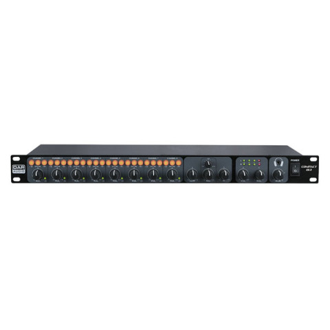 DAP Compact 8.1 är en högkvalitativ 19-tums 1U mikrofonmixer. Med några smarta funktioner skiljer den sig från andra kompakta mixrar. Alla ingångar kan användas för mikrofon- eller linjenivåingångar och har högpassfilter och fantommatningsval för varje ingång separat. Den har en balanserad masterutgång, en inspelningsutgång och en monitorutgång. Hörlursnivån påverkar också monitorutgången vilket gör detta till en oberoende extra utgång för ett andra område eller en zon.