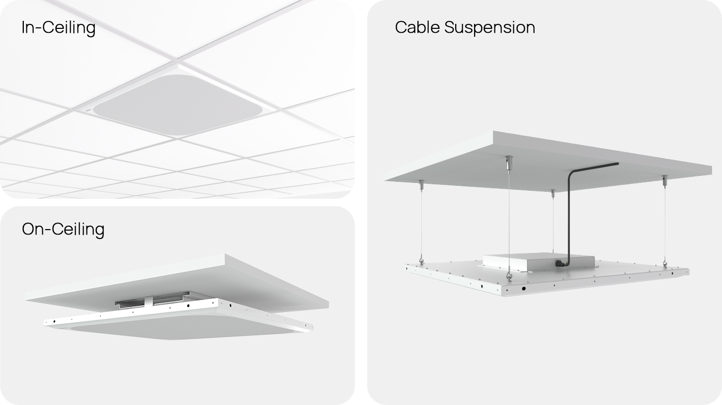 Kompakt utanpåliggande eller nedpendlad installation i standardtak 600×600 mm
