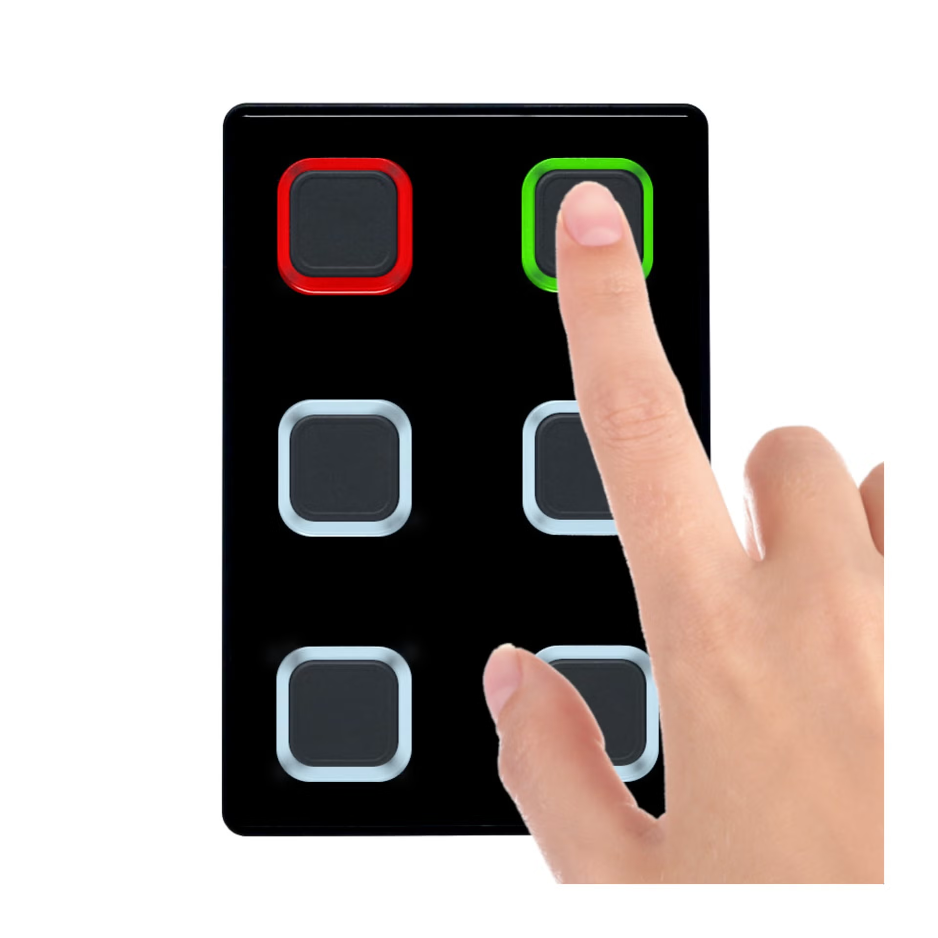 Tryckknapparna är utrustade med RGB LED-ringar. Lysdioderna kan programmeras fritt för att skapa en intuitiv användarupplevelse, till exempel genom att indikera vilken knapp eller ljusscen som är aktiv, eller genom att representera armaturens realtidsfärg.