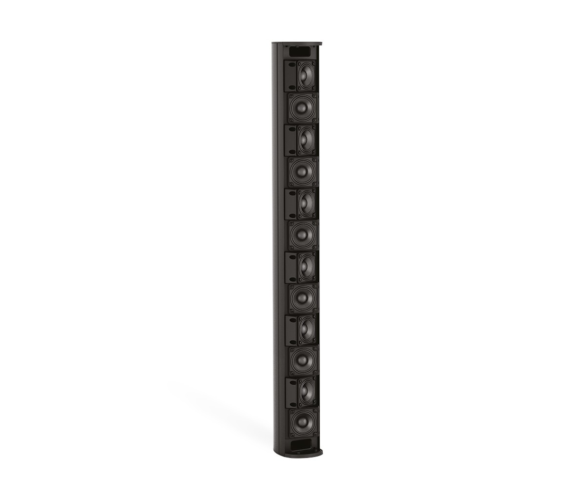Tolv 2,25-tums väderresistenta fullrange-element i vertikal array; ger 160° horisontell spridning och cirka 20° vertikal spridning
