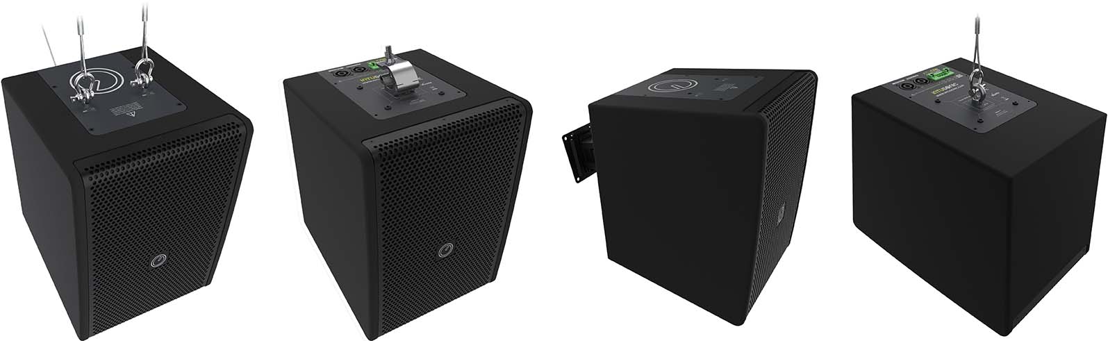 6FP100T/W ger en snudd på unikt antal monteringsvarianter. Metallbakstycket kan vändas och på så sätt kan högtalaren både tak- och väggmonteras (VESA-75-100/B tillbehör), hängas i tross med clamp eller flygas/pendlas i olika vinklar med vajer.