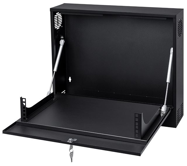 19" Vertikalt teknikskåp för väggmontage, 2HE, 130mm djup, svart