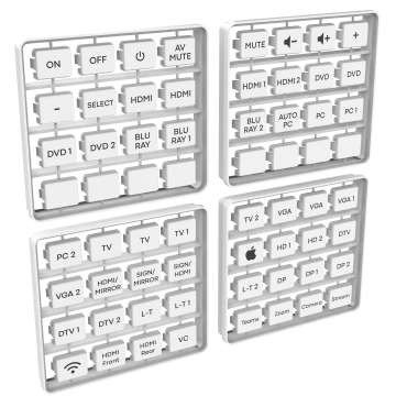 Genom att trycka på "ON"-knappen kan aktiveringskommandon skickas samtidigt via IR, RS-232 eller en 12V-trigger till flera enheter. Den eliminerar komplexiteten genom att endast visa vardagliga funktioner för användarna, vilket minskar behovet av tekniska supportsamtal och förhindrar förlust av fjärrkontroller.