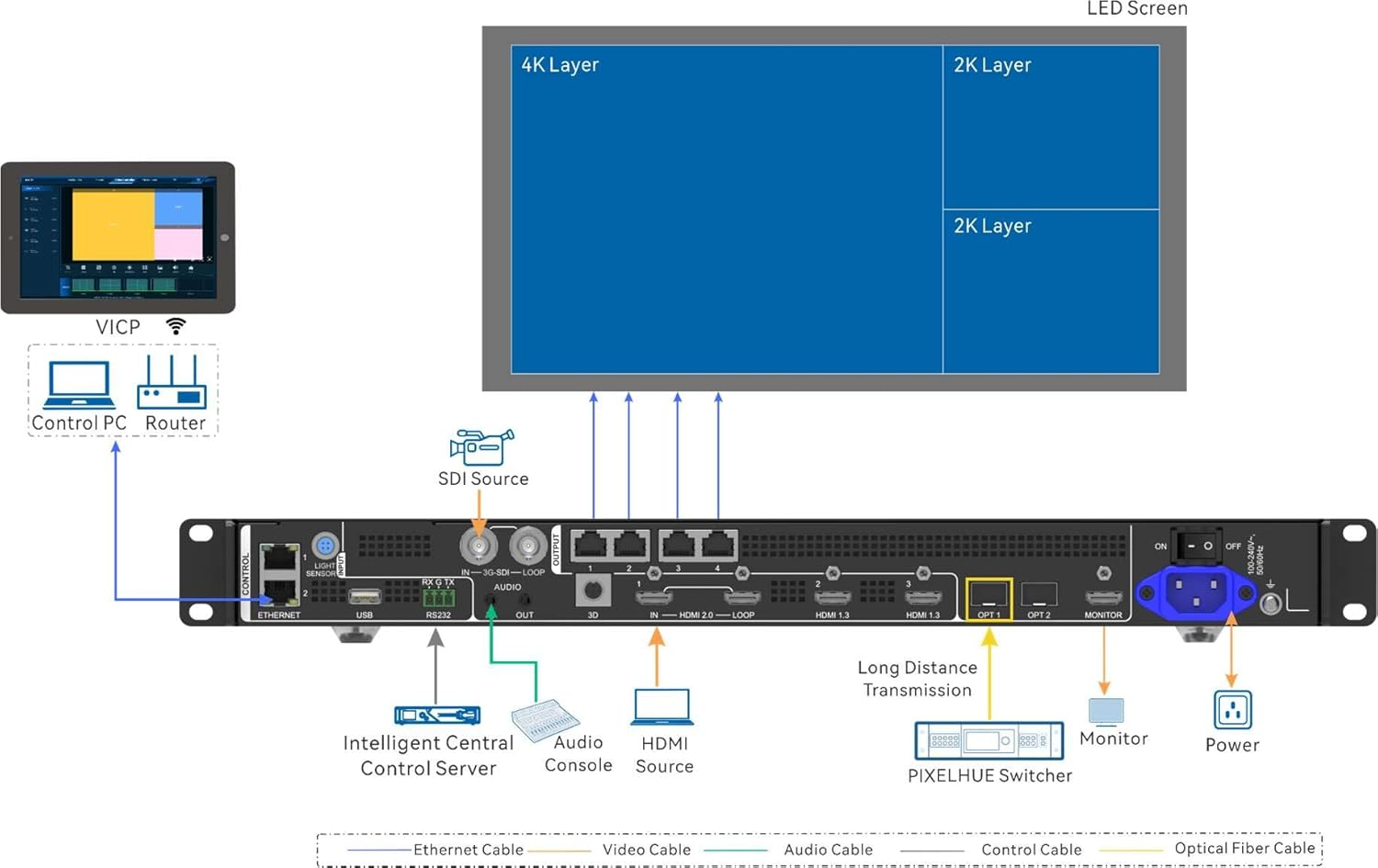 Den används flitigt i avancerade uthyrnings-, scenkontroll- och tekniska applikationer för högupplösta LED-skärmar.
