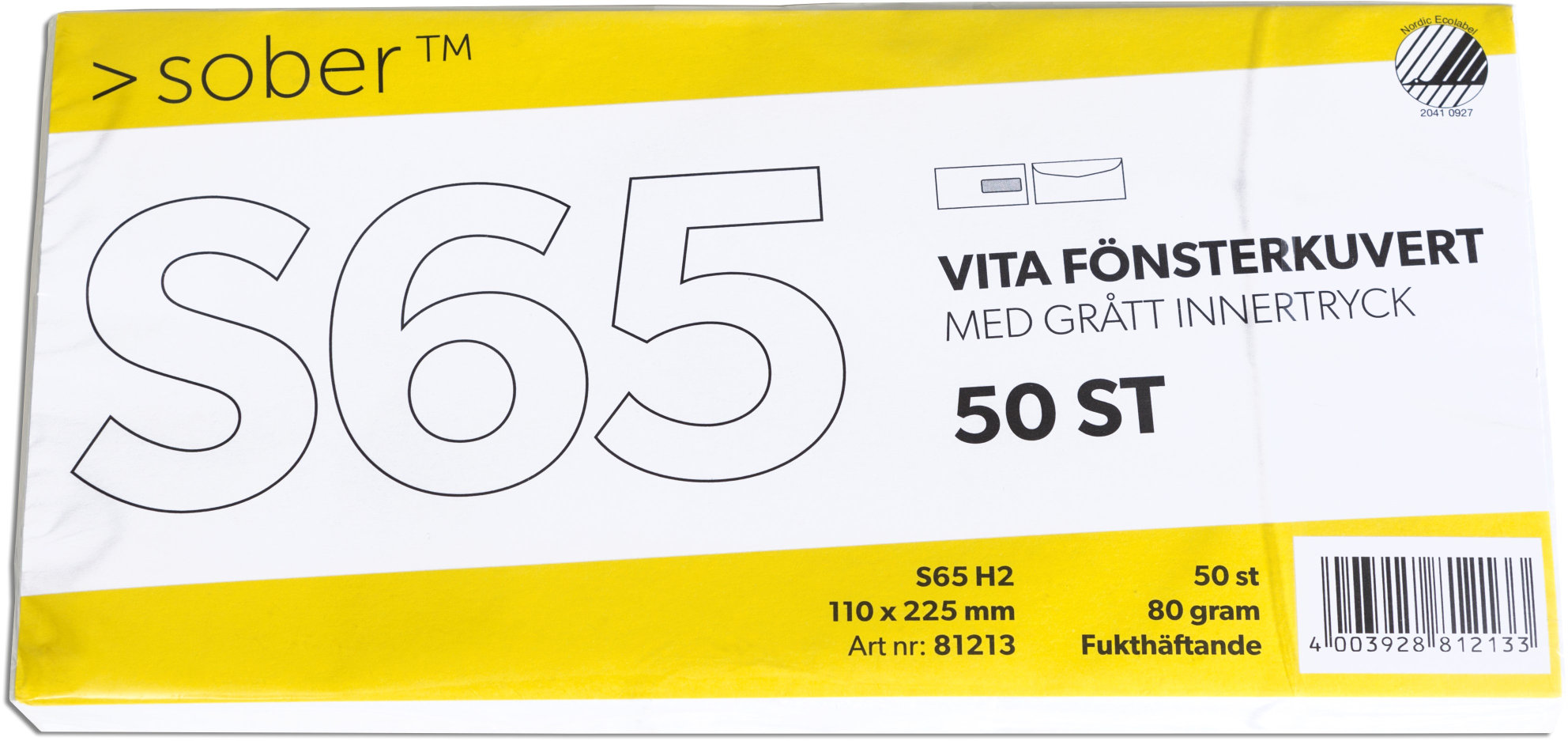 Kuvert Mayer Sober S65 Vit, fukthäftande förslutning, 50-pack