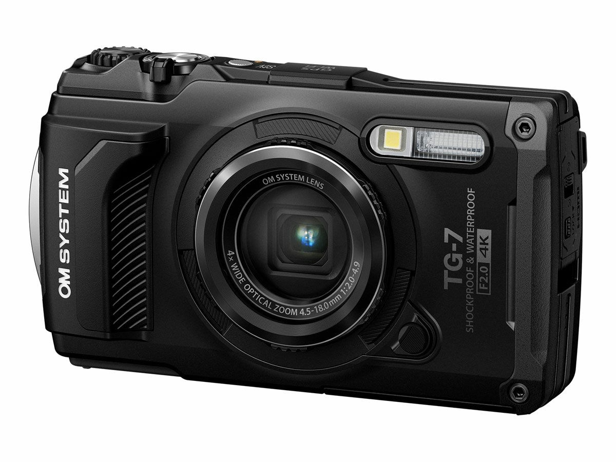 Olympus OM System TG-7 Black, 12 Mpixel, 4X zoom (25-100 mm), film 4K@30fps, vattentät till 15m, RAW, GPS, WiFi/Bluetooth - Svart