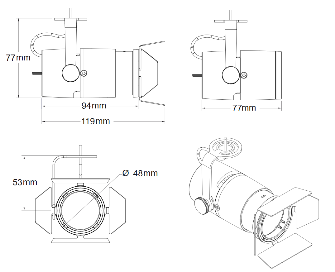 Arty Zoom 230V/10W Casambi, 4000K, Svart, 540lm, CRI 90, 7–45°, 3-fas, Potentiometer