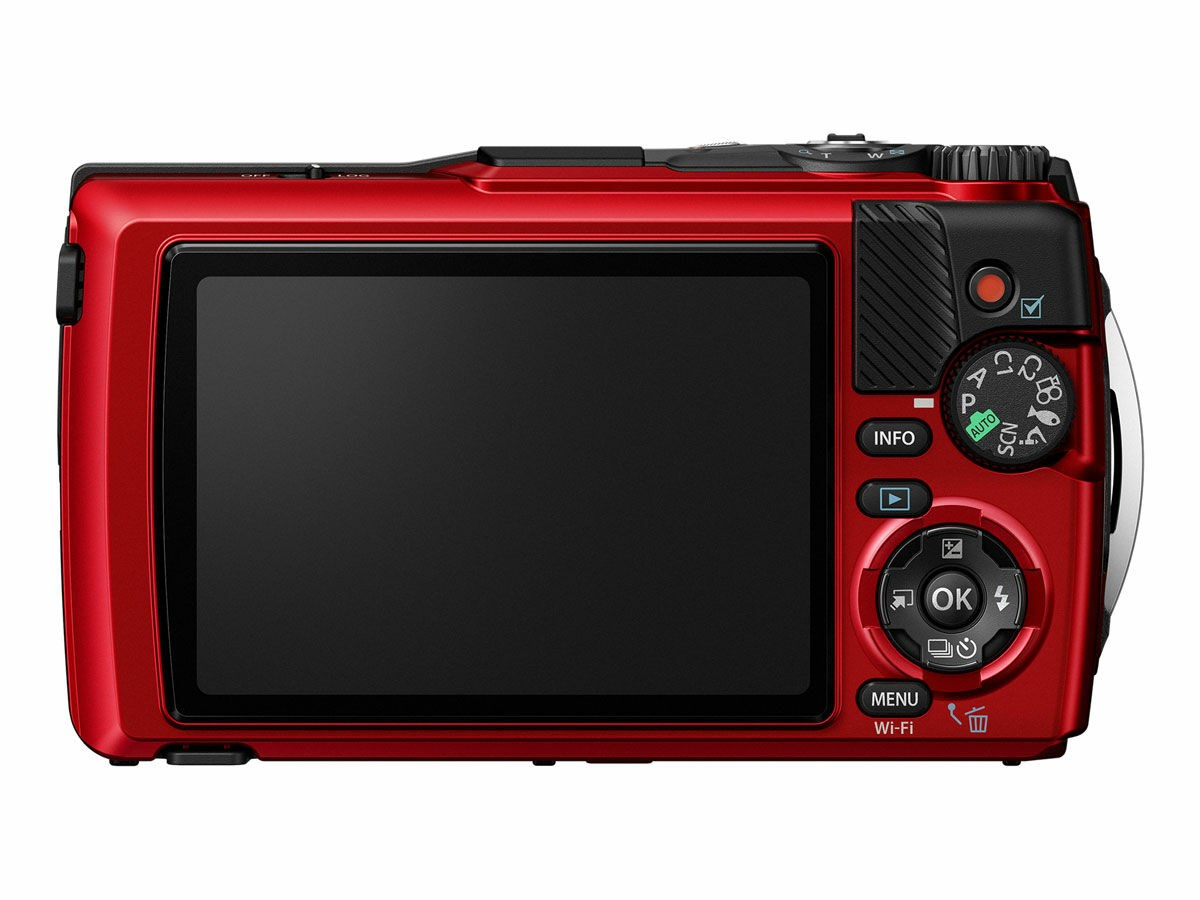 Olympus OM System TG-7 Red, 12 Mpixel, 4X zoom (25-100 mm), film 4K@30fps, vattentät till 15m, RAW, GPS, WiFi/Bluetooth - Röd