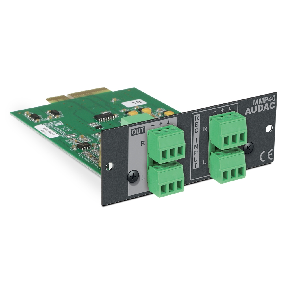 Audac MMP40 SourceCon™ modul, är en modulär MP3-spelare/recorder. Anpassad att användas i Audacs modul/media-spelare XMP44 samt mixerförstärkarna MFA208 och MFA216. Enkel montering, "plug & play".