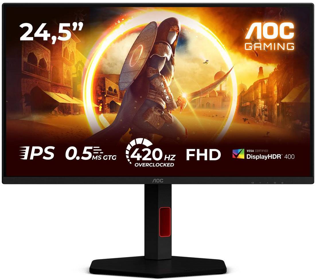 24.5" AOC 25G4KUR, Fast IPS 1920x1080, 0,5ms, 420Hz, HDR400, höjdjusterbar, pivot, 2xHDMI/DP, USB 3.2-hubb