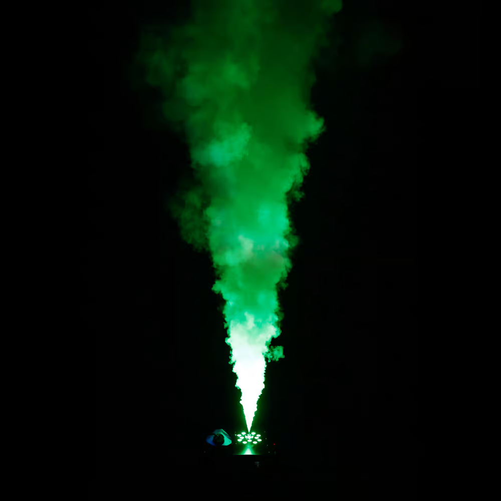 Att skapa spektakulära stämningar och effekter är en riktig höjdare med Cameo Steam Wizard 2000. Den producerar täta, jämna utbrott av vattenbaserad dimma med längder på 7 meter som samtidigt lyser upp av 12 kraftfulla 10-watts 4-i-1-LED-lampor för dramatiska scener och rika RGBA-färger. Med placeringsalternativ för vätsketanken upptill och nedtill möjliggör denna höghastighets vertikala dimmaskin både markdrift och enkel installation ovanför huvudet. Den kan även monteras horisontellt.
